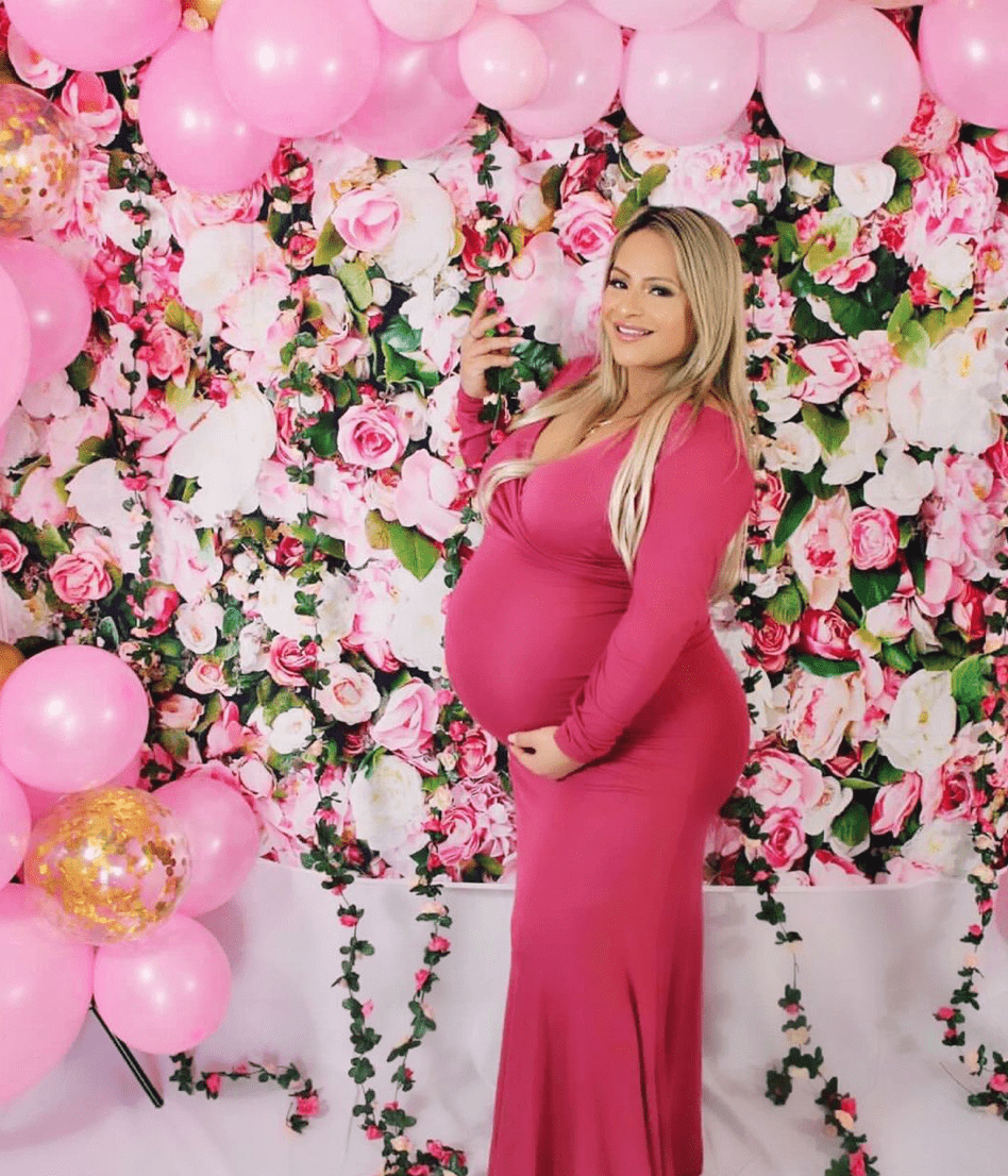 Pretty in Peony, Mama @itszkristine is wearing our Long Sleeve Sweetheart Flare Gown!