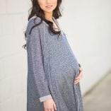 Maternity Sweatshirt Dress? Yes, please. Short, flowy, v-neck, long-sleeve dress. Navy blue with cream reverse stitching, unique open back with side pockets. Nothing could be better.
