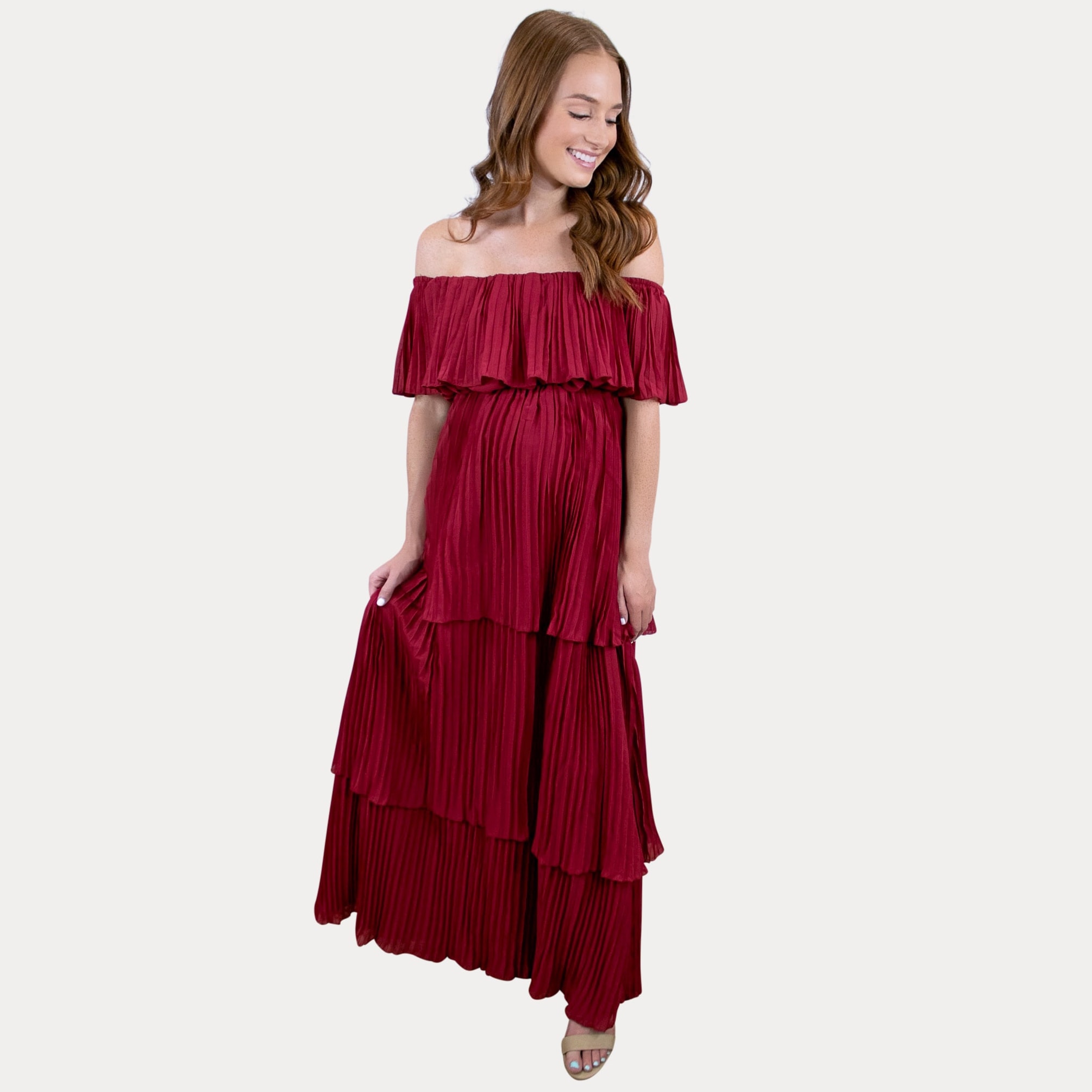 Bishop Sleeve One Shoulder Midi Maternity Dress