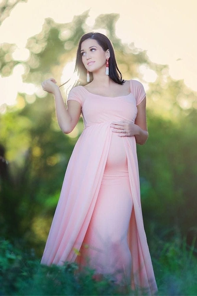 Long Sleeve Tie Front Maternity Gown with Mini Train