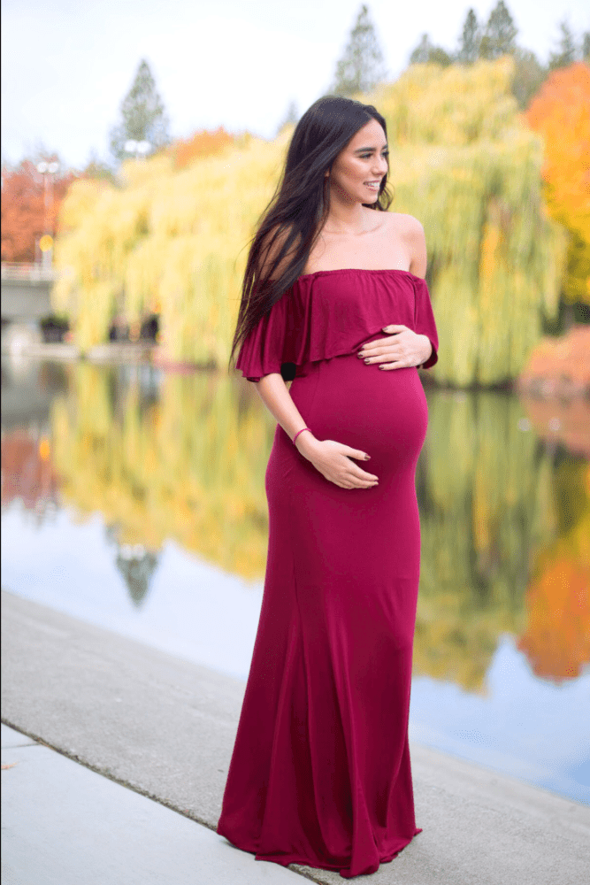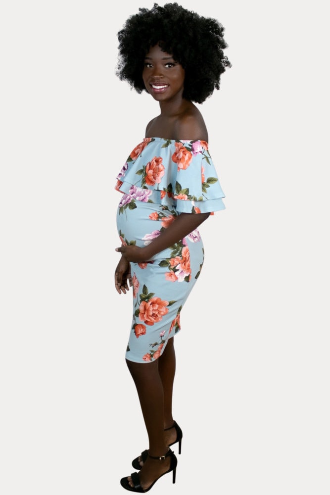 Off the Shoulder Ruffle Maternity Dress with Sleeves