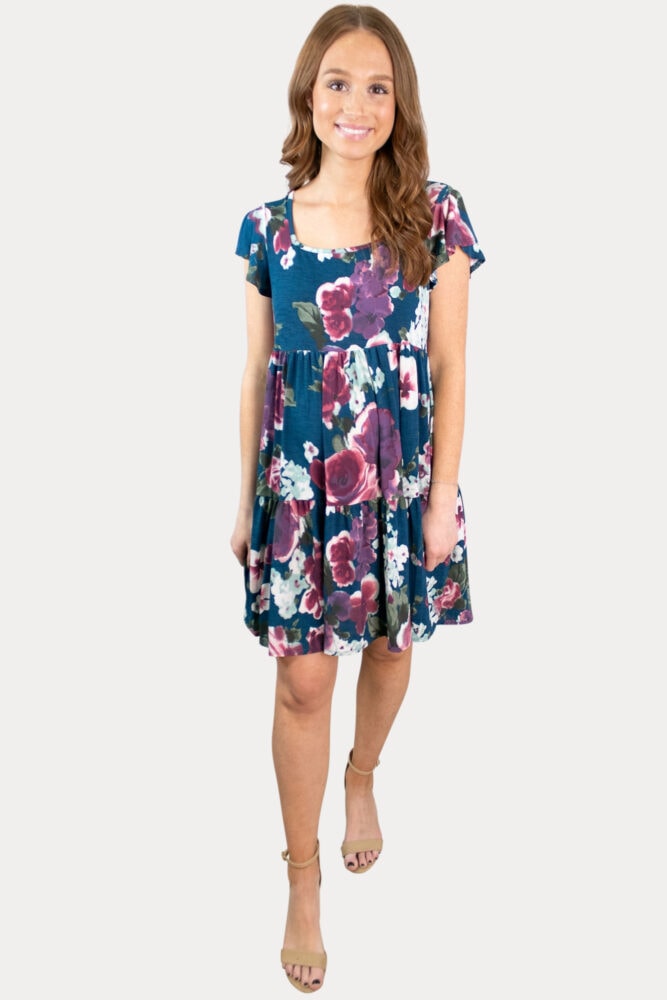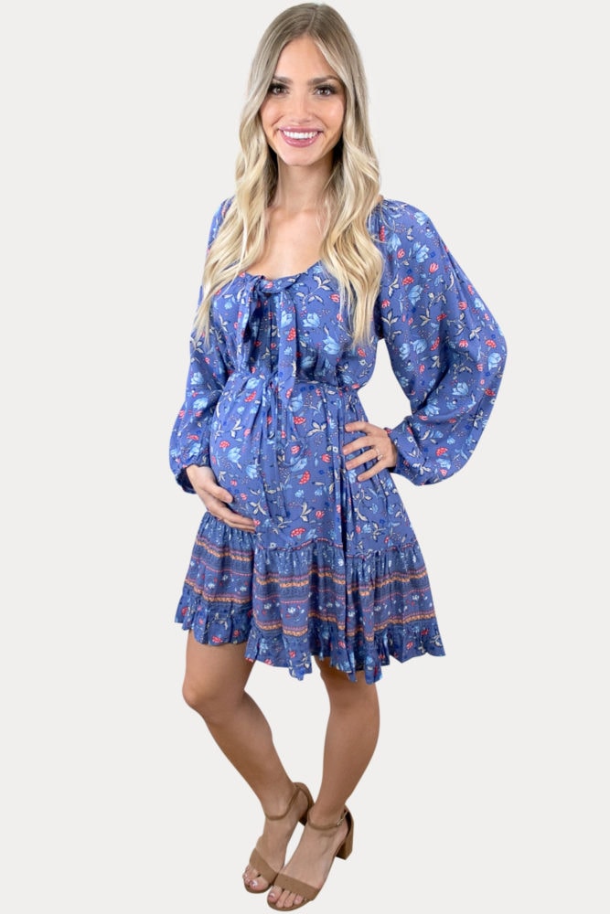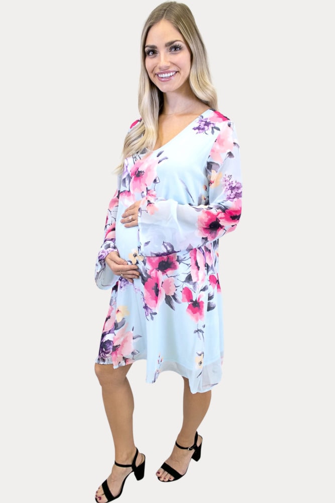 Deep Scoop Bell Sleeve Mini Maternity Dress
