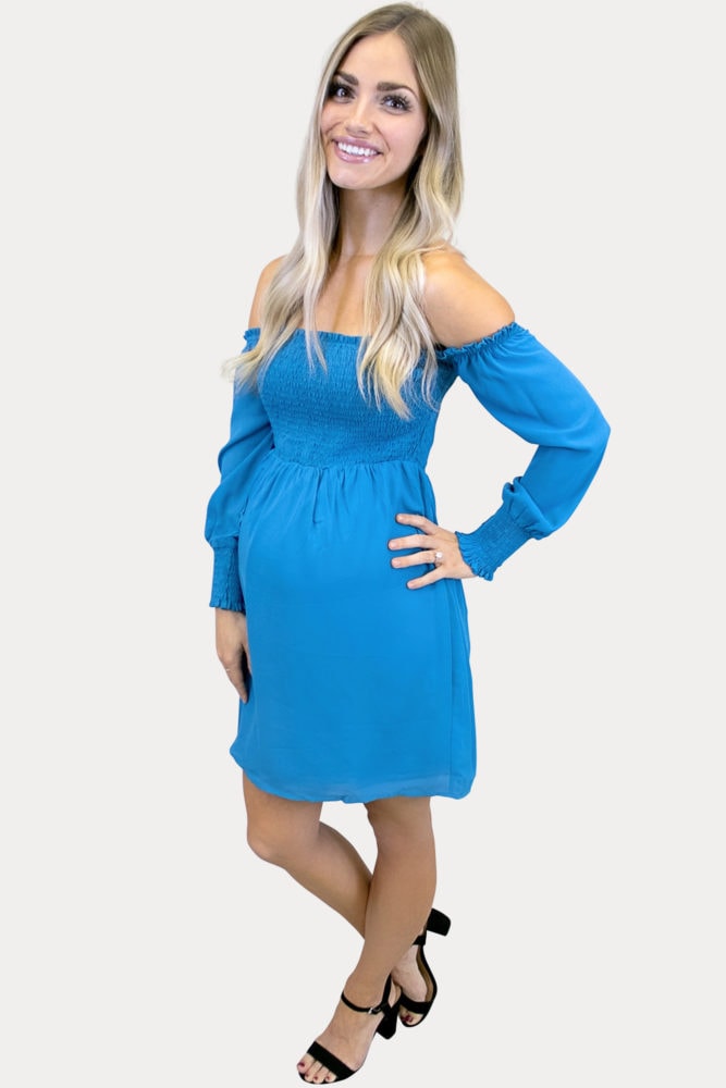 Off the Shoulder Mini Bell Sleeve Maternity Dress