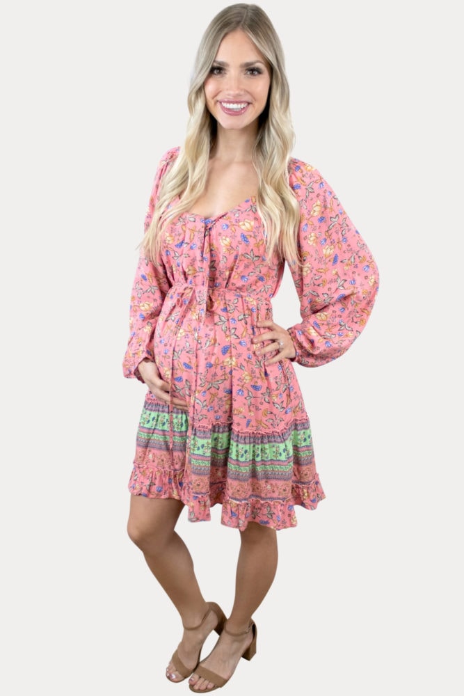 Deep Scoop Tie Back Maternity Dress with Long Sleeves