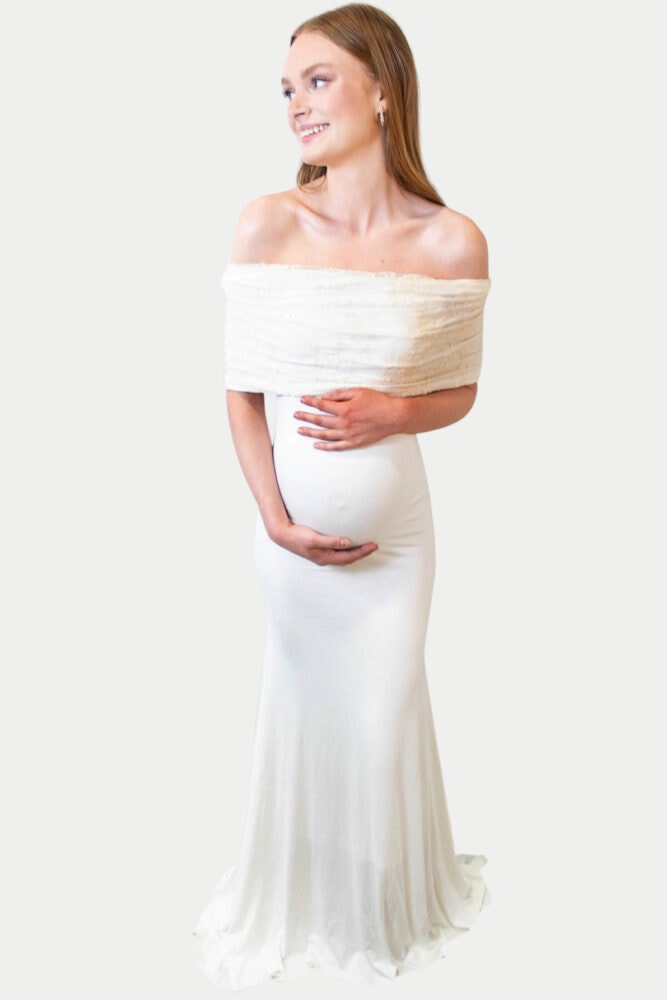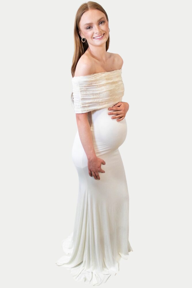 Ruched Long-Sleeve Off the Shoulder Maternity Gown