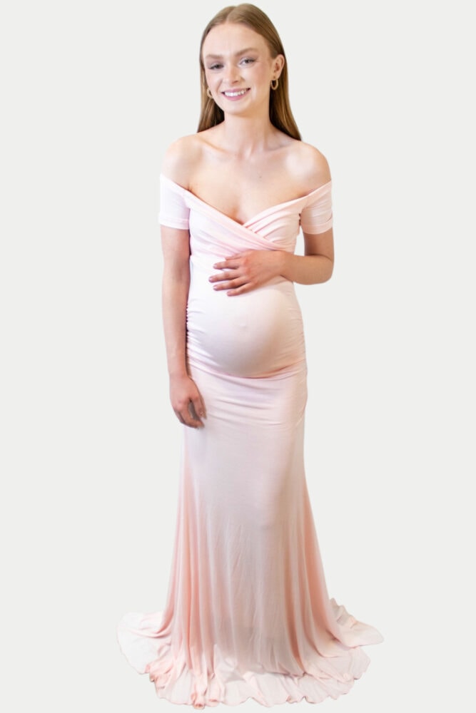Off the Shoulder Sweetheart Flare Maternity Gown