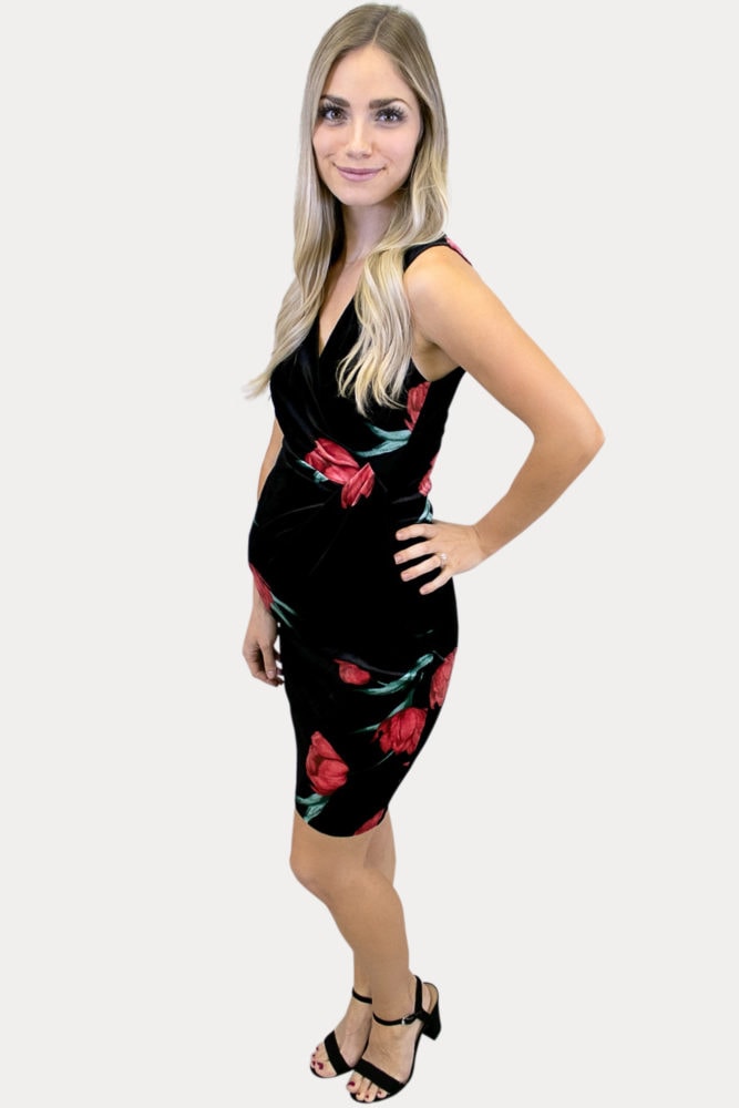 Long-Sleeve Fold Over Ruched Maternity Dress with Lace