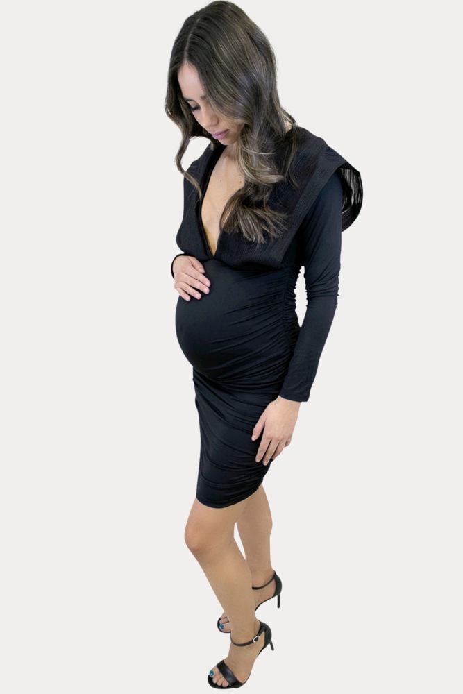 Fold Over Ruched Maternity Dress with Long Sleeves
