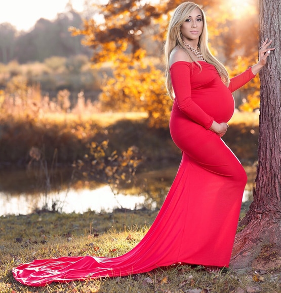 Long Sleeve Sweetheart Maternity Flare Gown