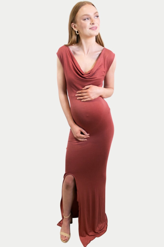 Cowl Neck Maternity Gown with Front Slit