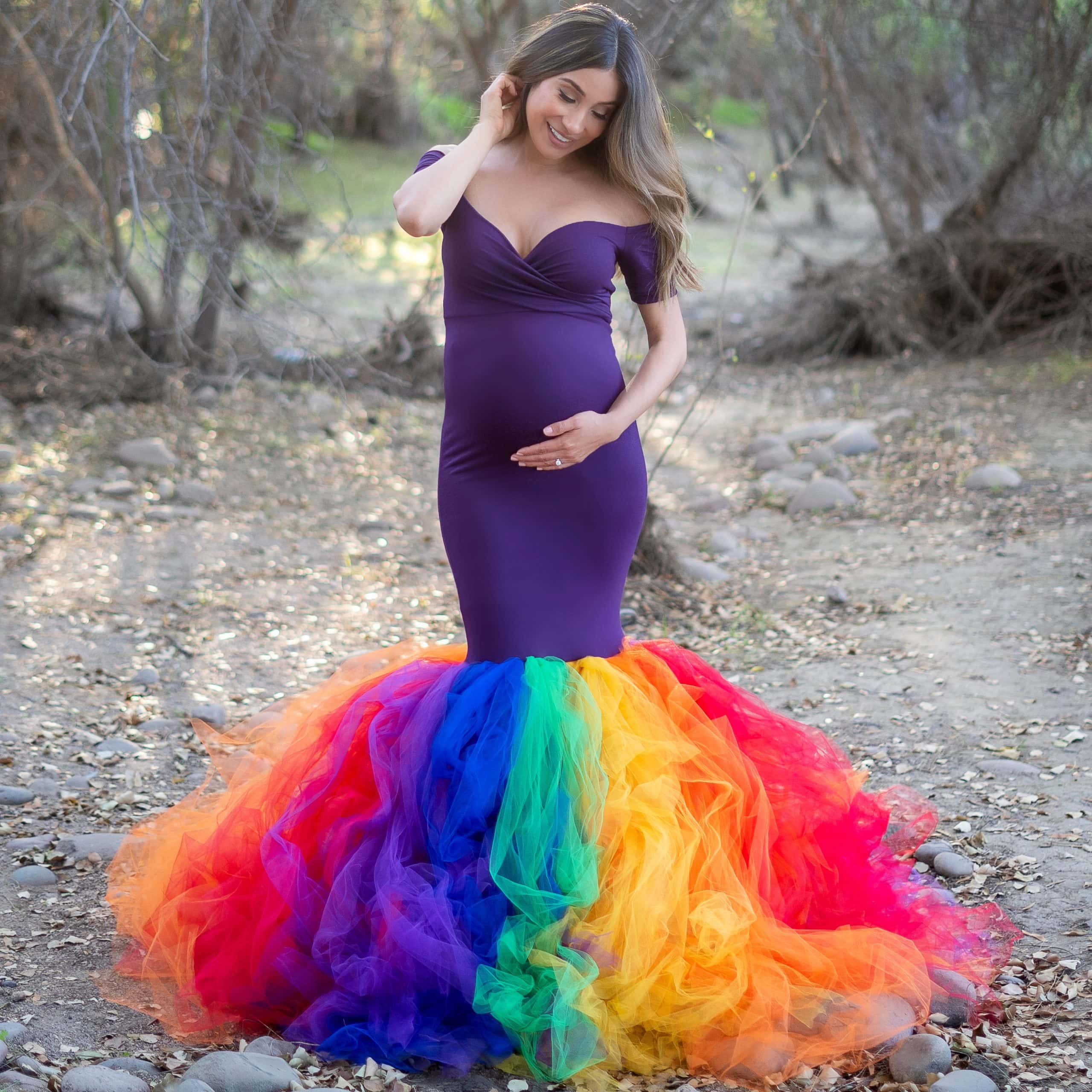 Off the Shoulder Sweetheart Maternity Rainbow Gown