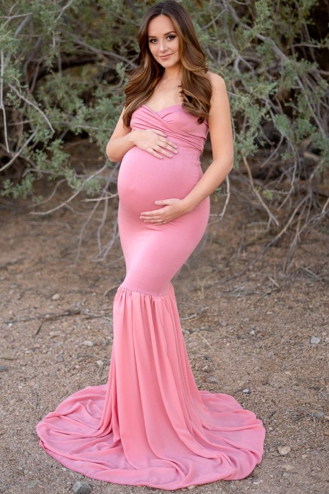 Strapless Rose Chiffon Maternity Gown