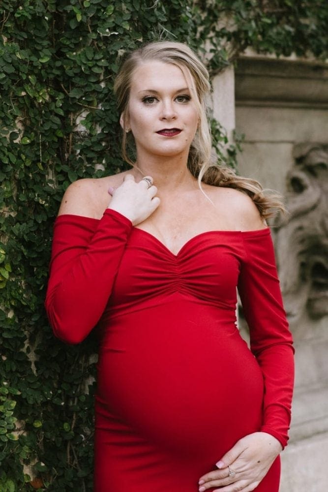 Long Sleeve Cross Bust Maternity Gown with Mini Train