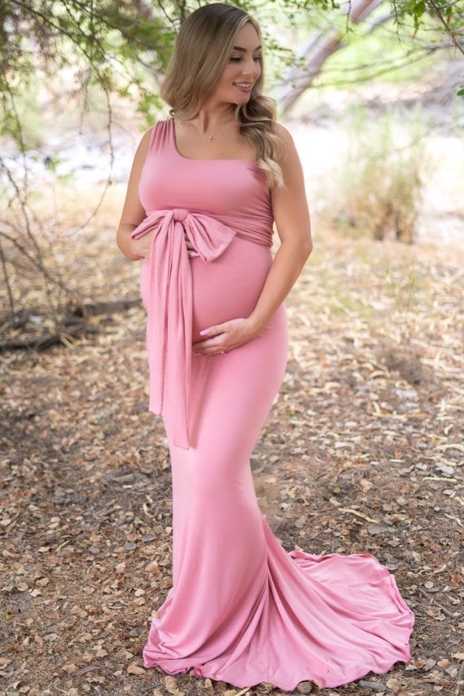 Tie Front One Shoulder Maternity Gown with Mini Train