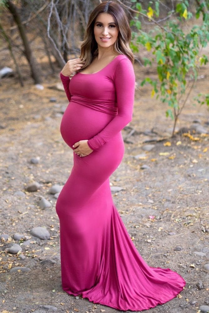 Long-Sleeve Baby Shower Maternity Gown with Mini Train