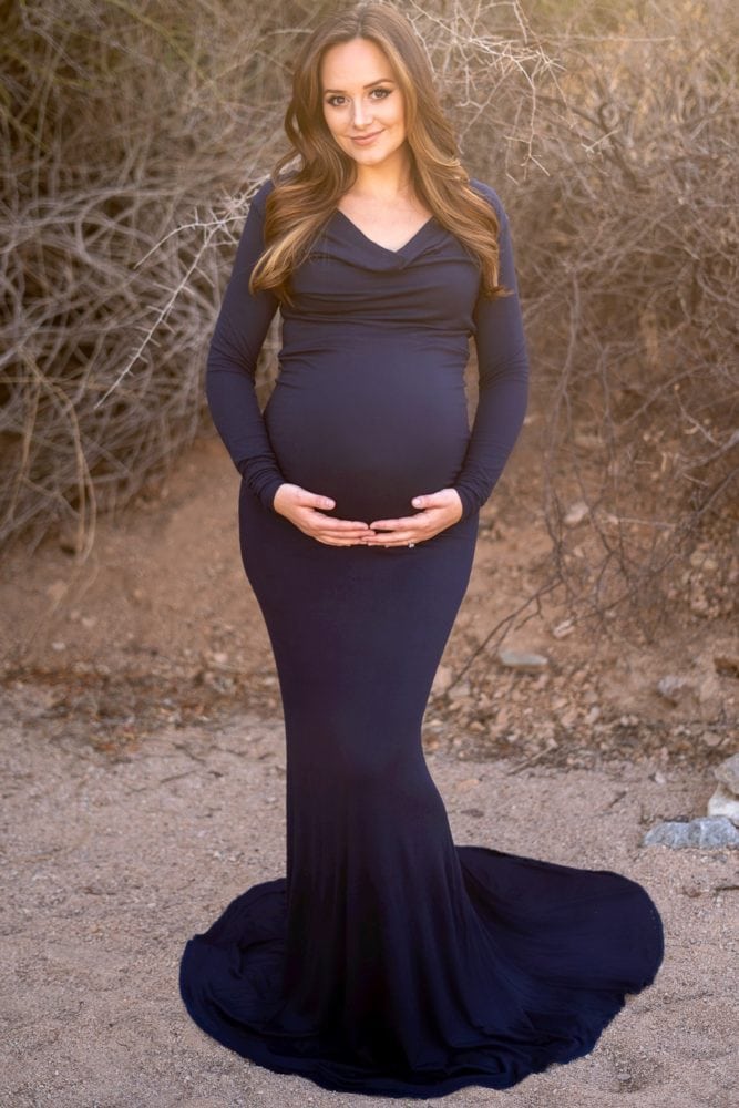 Long Sleeve Cowl Neck Maternity Gown with Mini Train