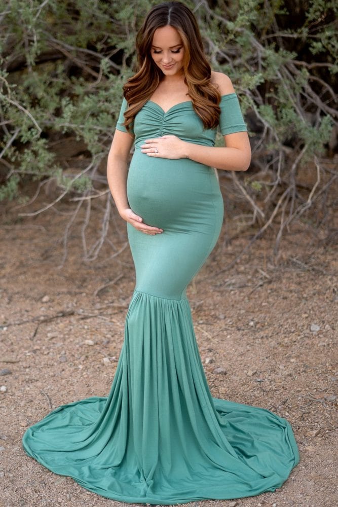 Off the Shoulder Cross Bust Maternity Gown with Mini Train