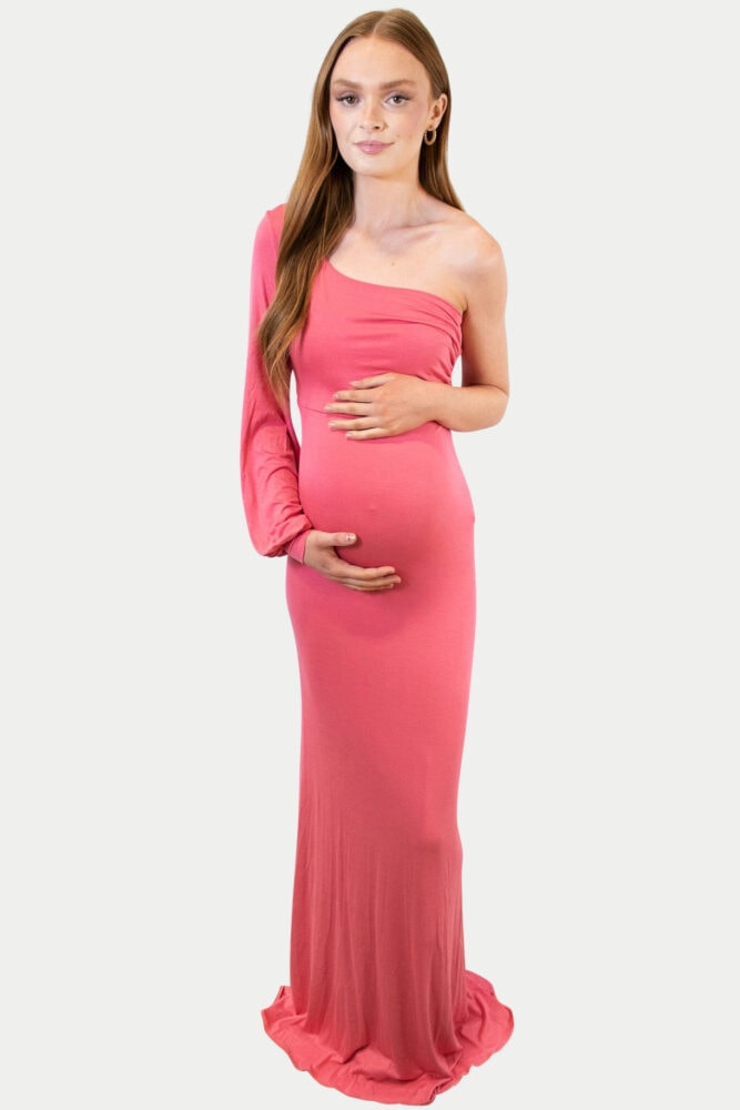 One Shoulder Cross Bust Maternity Gown with Mini Train