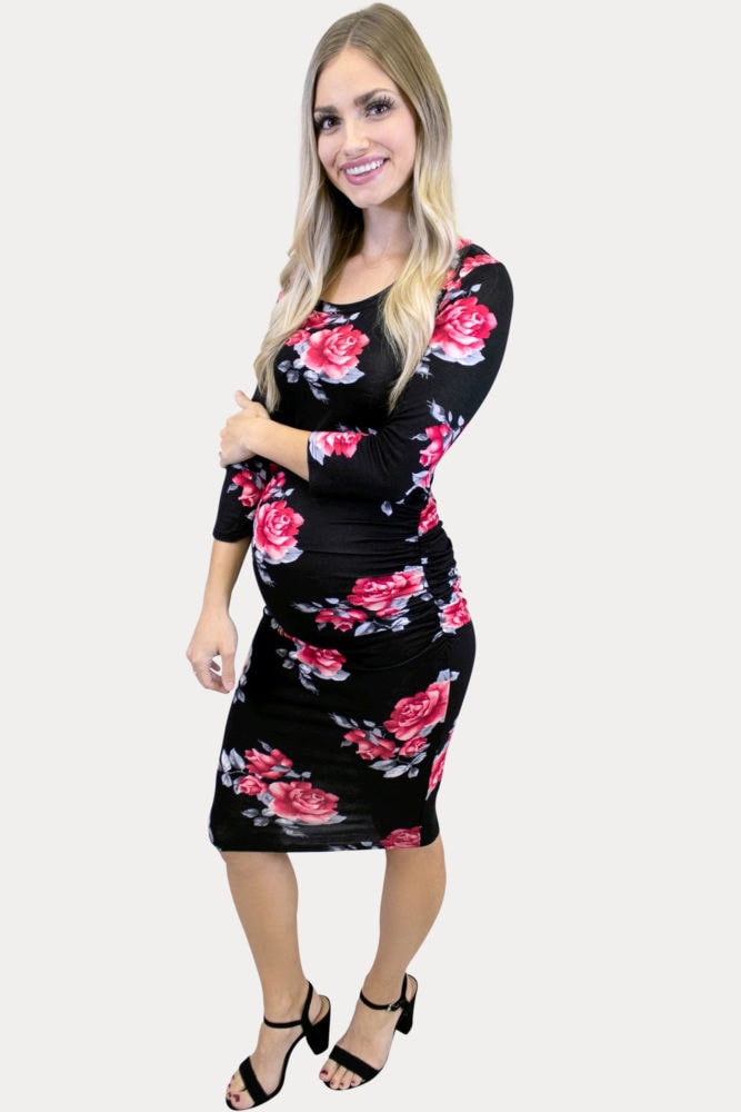 Fold Over Ruched Maternity Dress with Long Sleeves