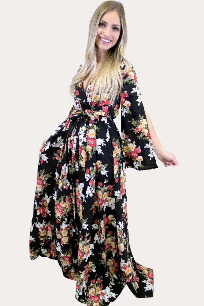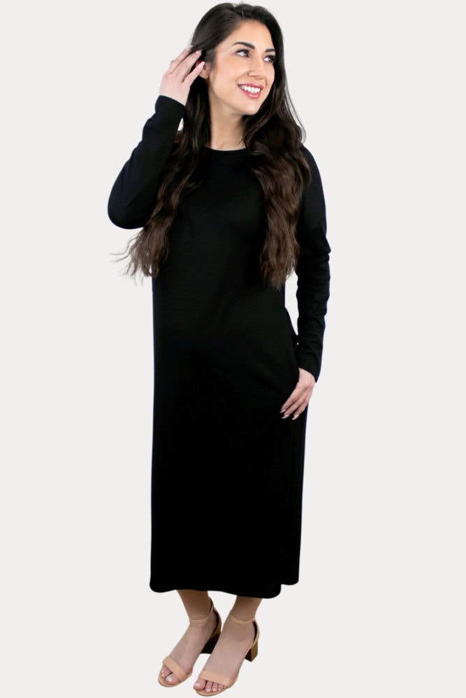 Deep Scoop Tie Back Maternity Dress with Long Sleeves