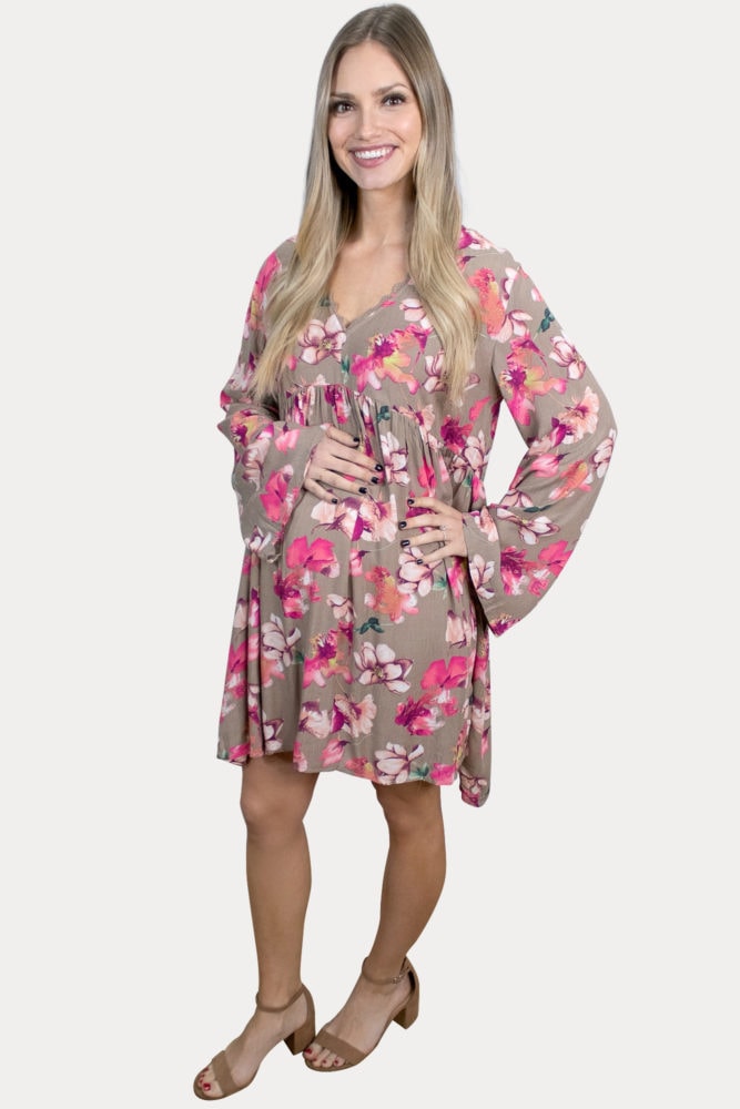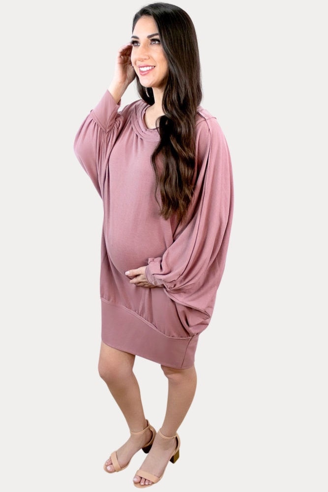 Deep Scoop Bell Sleeve Mini Maternity Dress