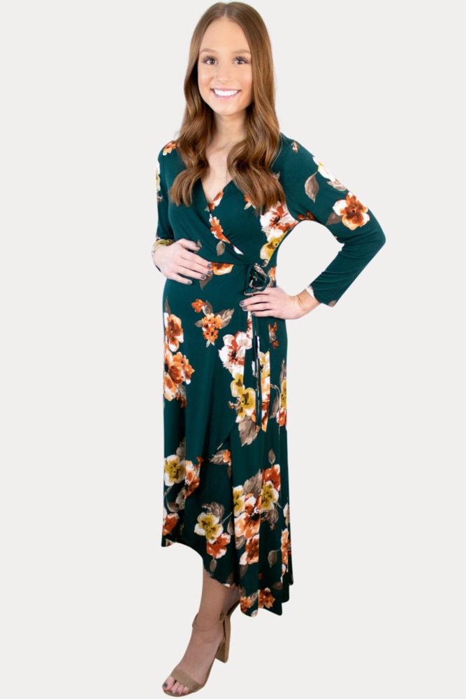 Long Sleeve Fold Over Ruched Maternity Dress with Side Slits