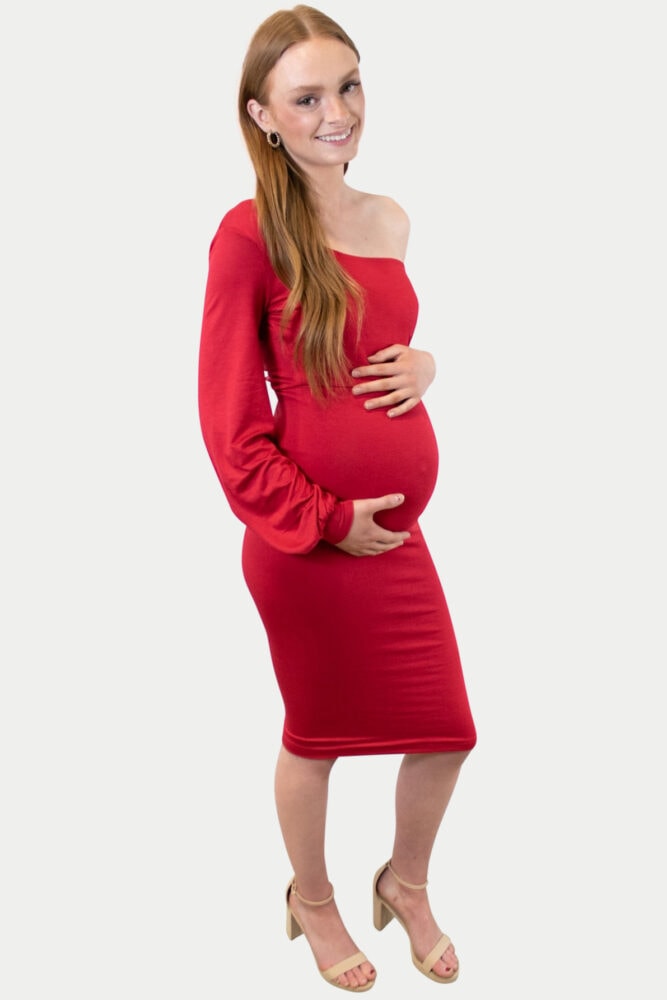 One Shoulder Midi Maternity Dress