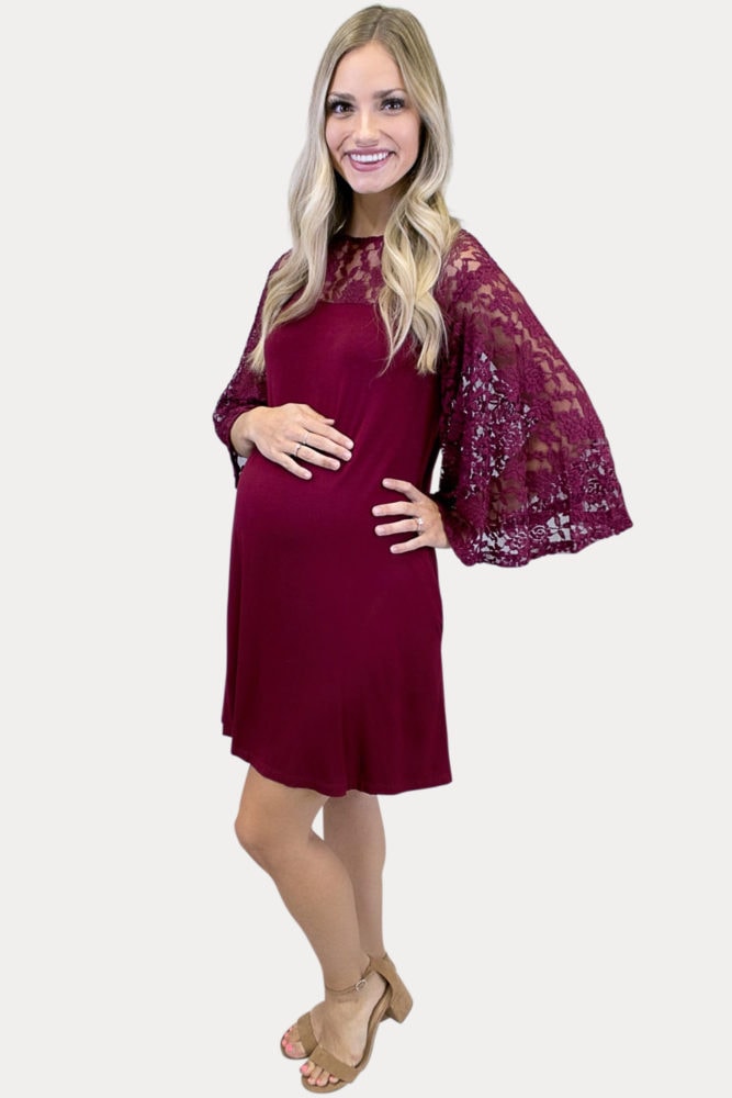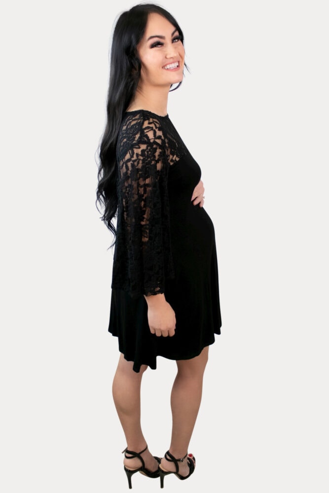 Mini Maternity Dress with Lace Sleeves