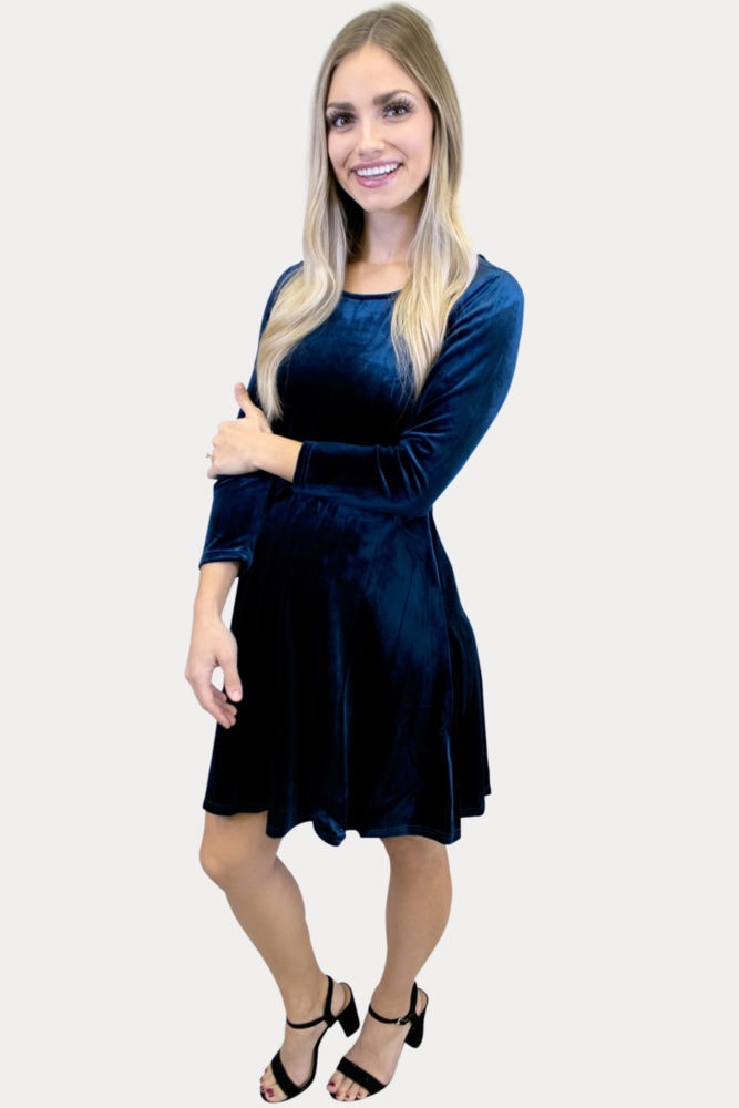Deep Scoop Tie Back Maternity Dress with Long Sleeves