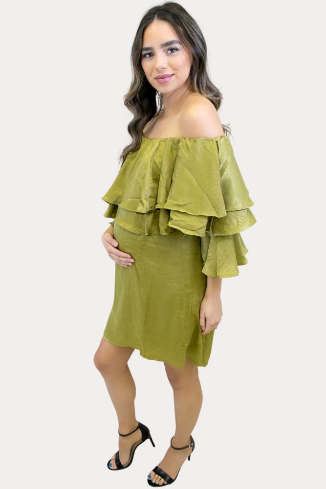 Double Ruffle Off the Shoulder Maternity Dress