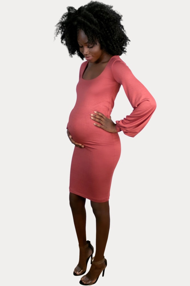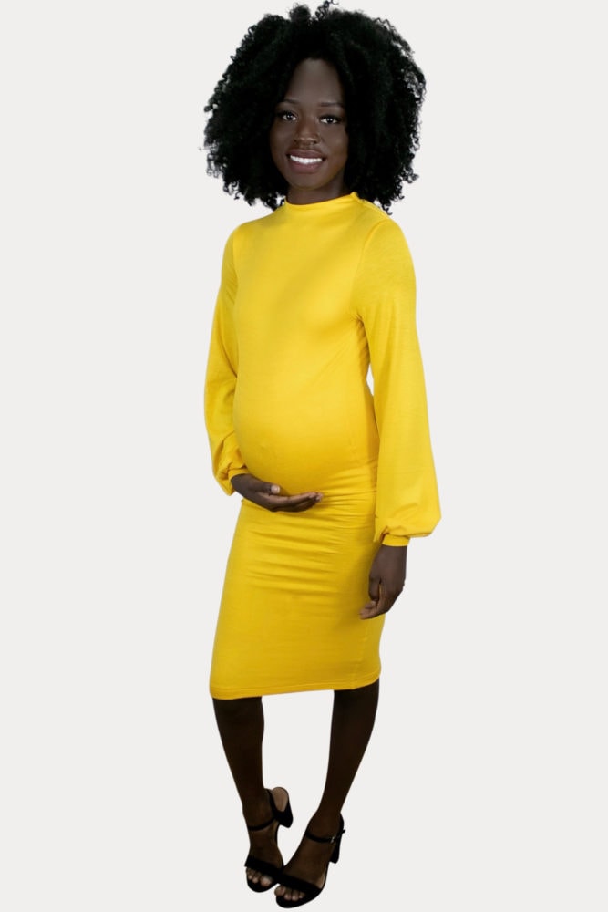 Mock Neck Maternity Dress with Long Sleeves
