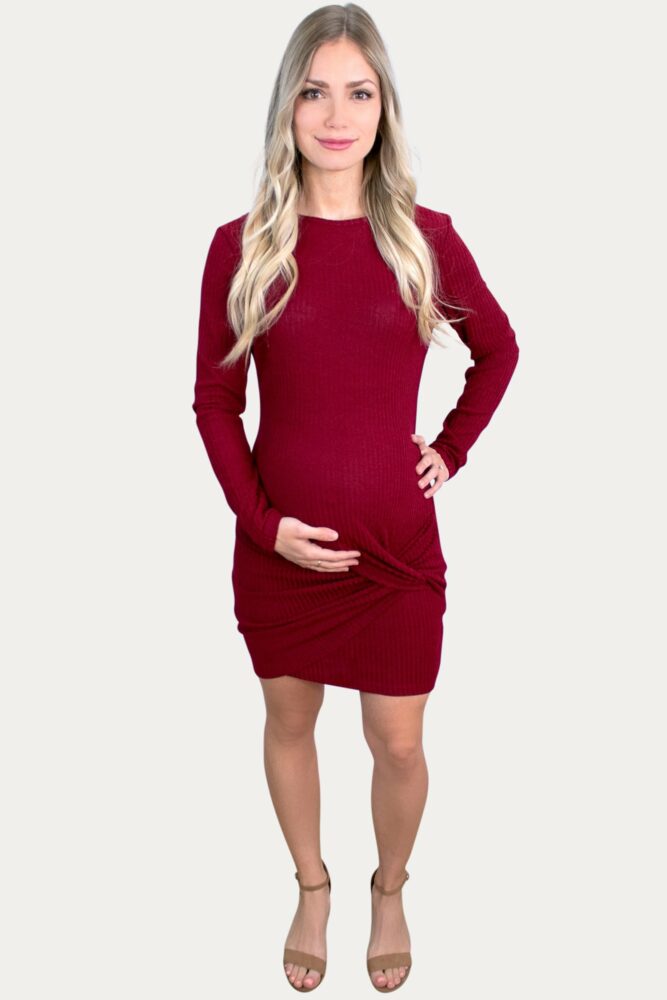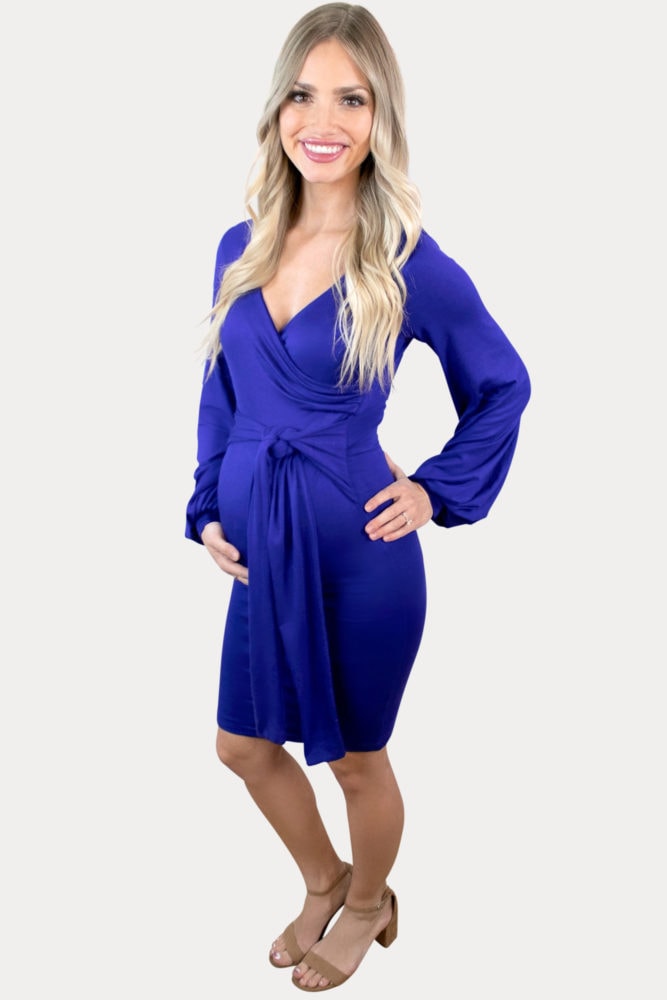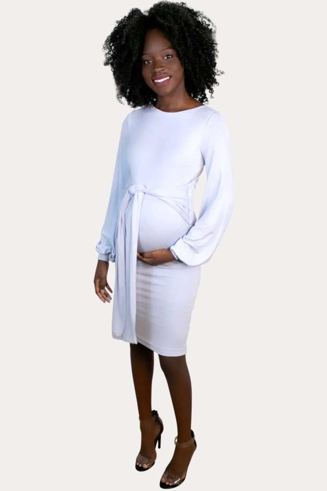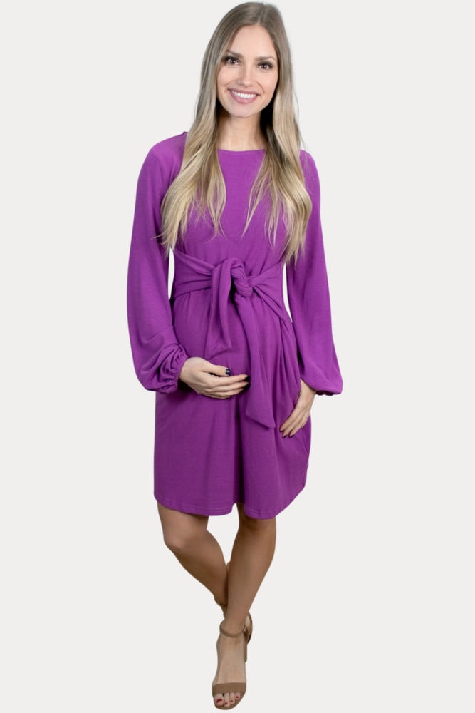 Tie Front Maternity Dress with Long Sleeves