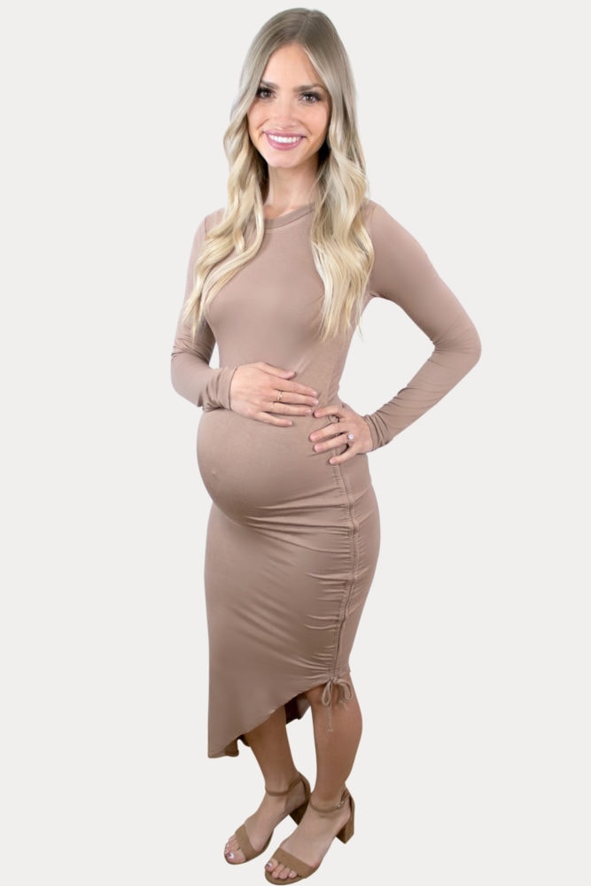 Basic Ruched Maternity Dress with Long Sleeves