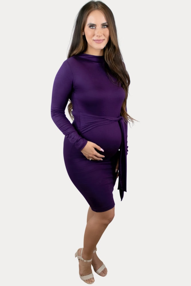 Turtleneck Maternity Dress with Side Slits