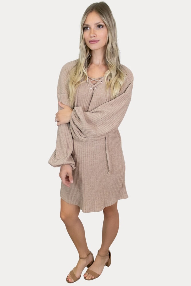 Sweetheart Tie Front Maternity Dress with Long Sleeves