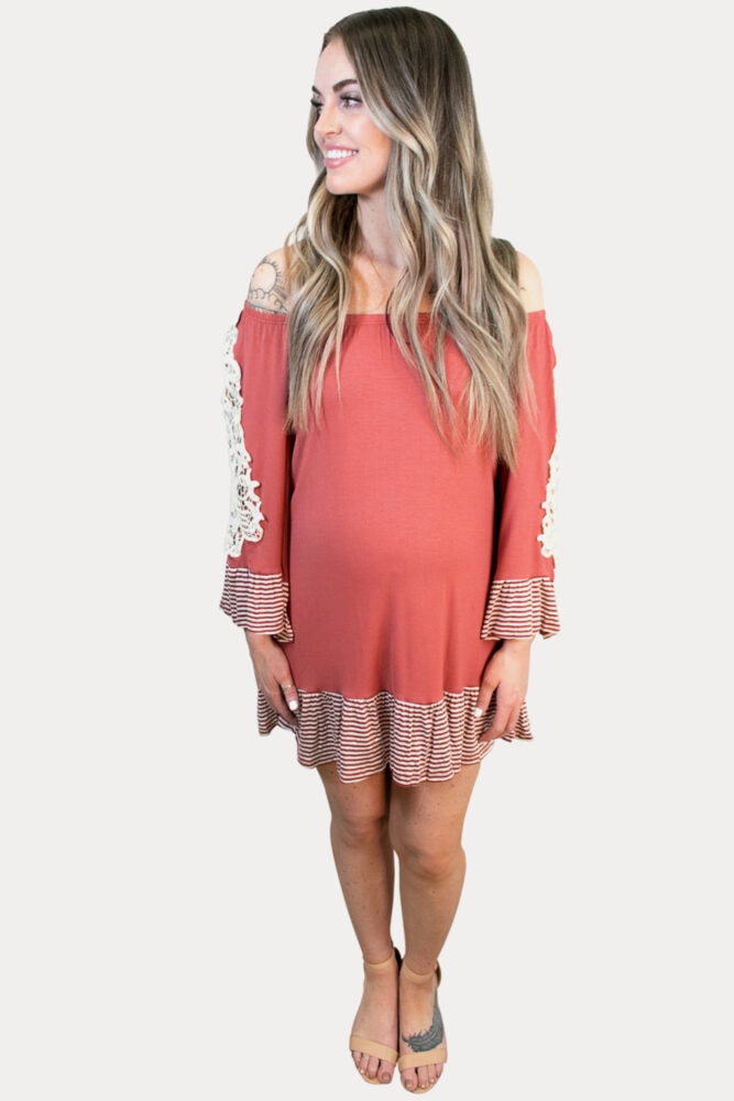 Off the Shoulder Lace Ruffle Maternity Dress