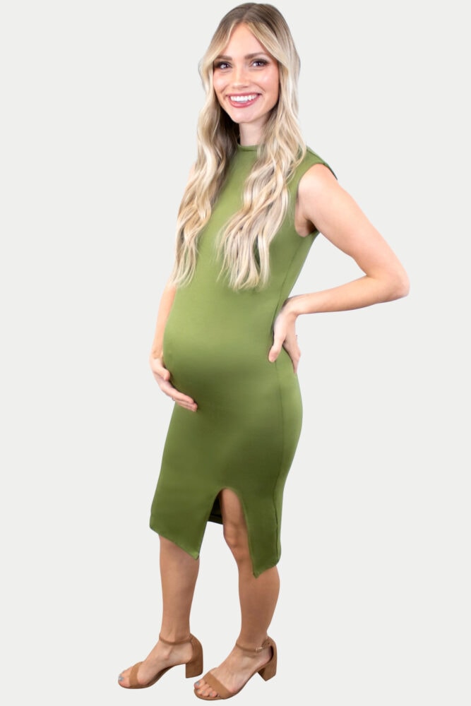 Sleeveless Mock Neck Maternity Dress with Slit