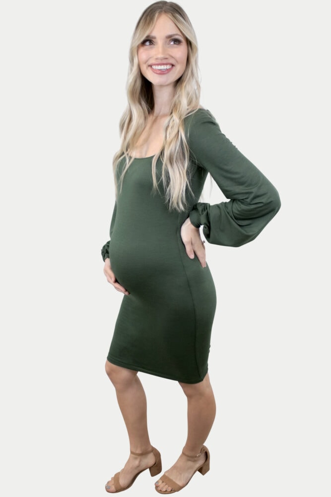 Deep Scoop Bishop Sleeve Maternity Dress