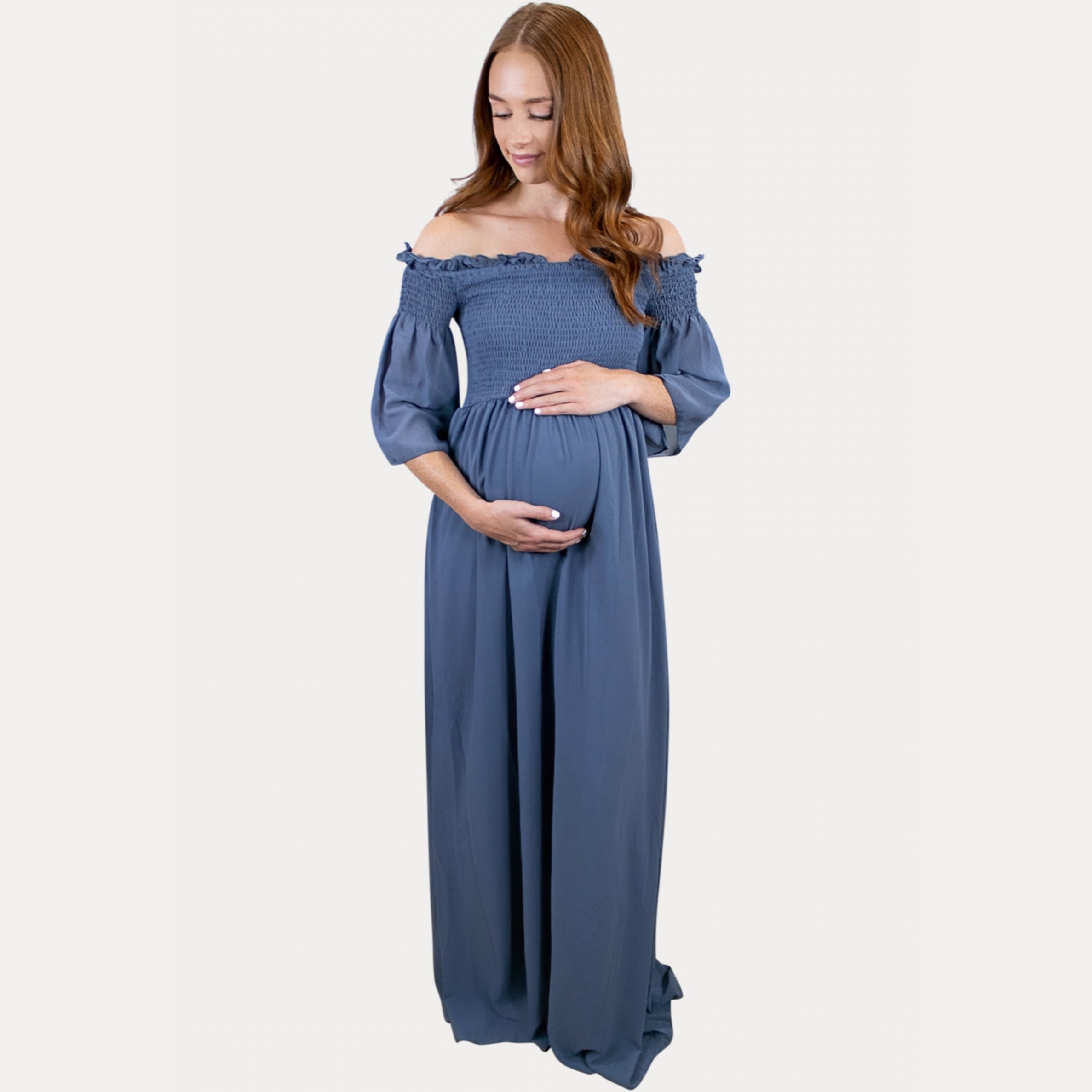 Off the Shoulder Sweetheart Maternity Dress with Bishop Sleeves
