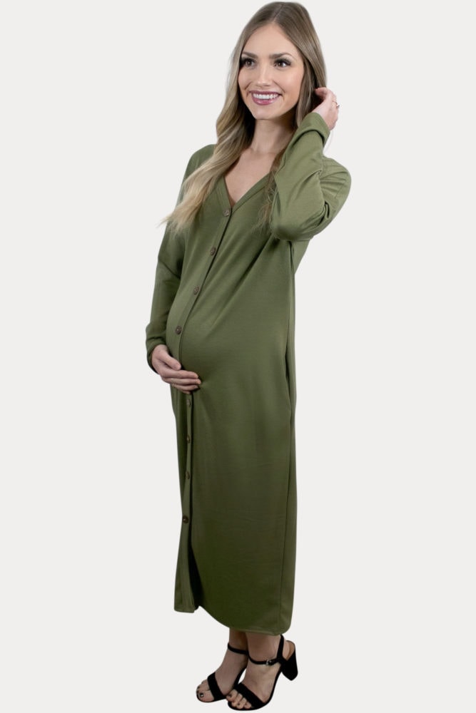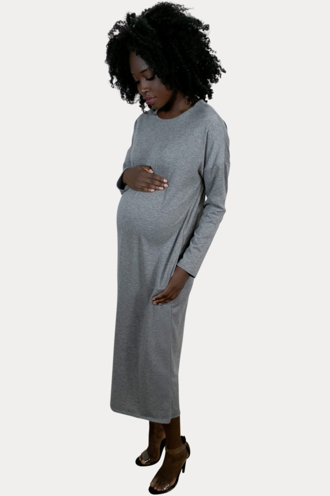 Midi Maternity Dress with Long Sleeves