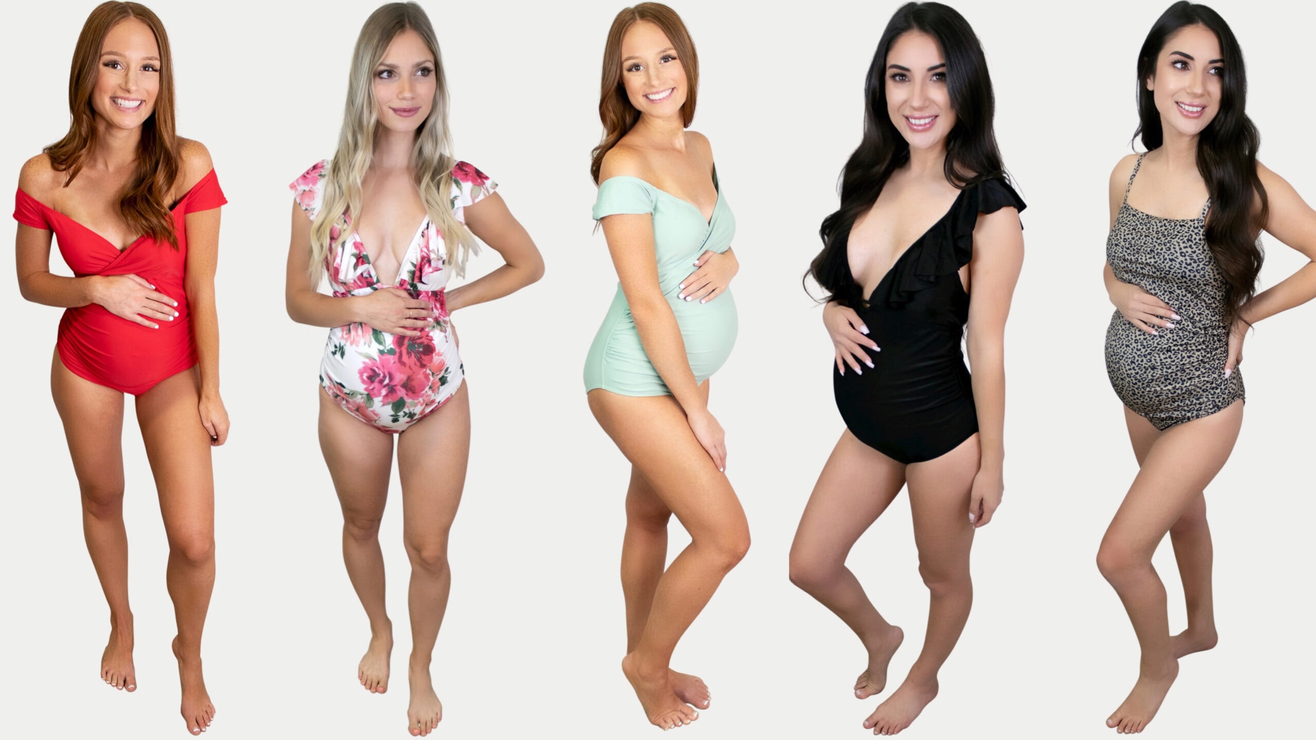 When you’re pregnant as can be and the weather is hot, nothing sounds better than going for a swim! Go for a dip in style and comfort with one of our Sexy Mama Maternity swimsuits! Available in a wide range of colors and prints, we have a swimmy for every mama! We have also included our favorite pieces to wear with each swimsuit, to make an outfit for each one!