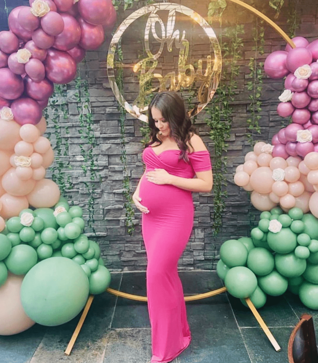 How cute is Mama @monikvcruz wearing our Slim Fit Baby Shower Gown in Blush Pink?!