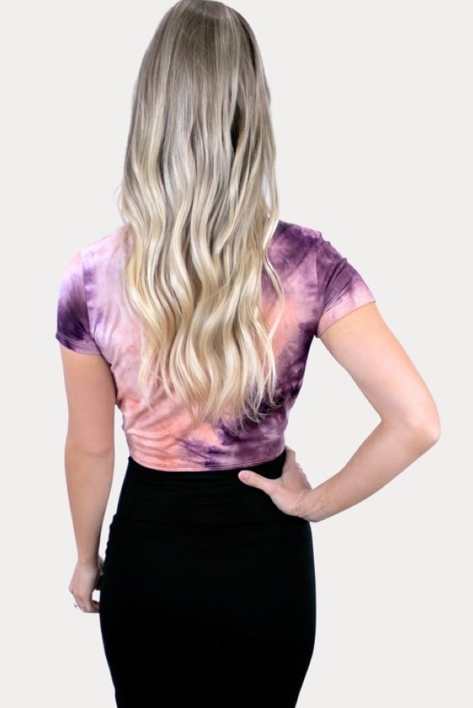 Tie Dye Crop Belly Maternity Top in Pink and Purple