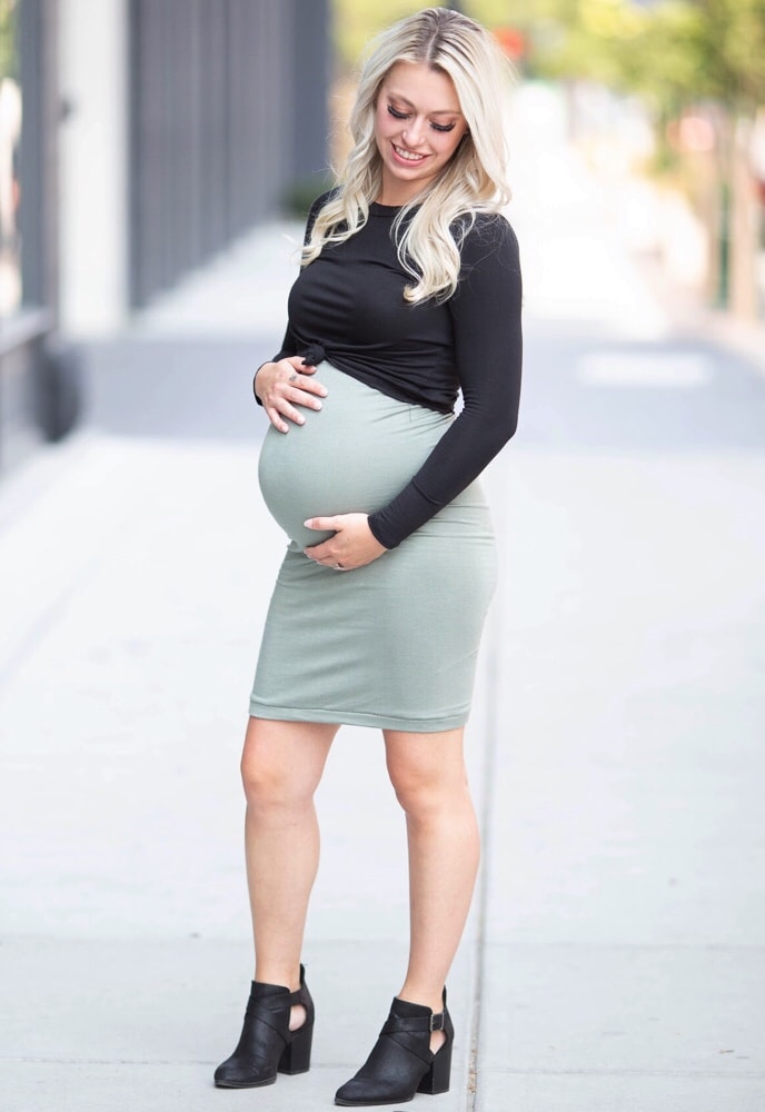 Our super soft Over the Belly Skirt is the maternity skirt of your dreams! All Sexy Mama Maternity skirts pull over your baby bump to provide ultimate maternity comfort and plenty of room to grow. Constructed of an ultra-stretch, soft material, this is the perfect skirt to wear day in and day out. Modern pencil skirts can be dressed up or down and pair perfectly with your favorite pre-pregnancy crop tops and teeshirts. Grab a cute maternity skirt today and love it all the way through pregnancy and beyond.