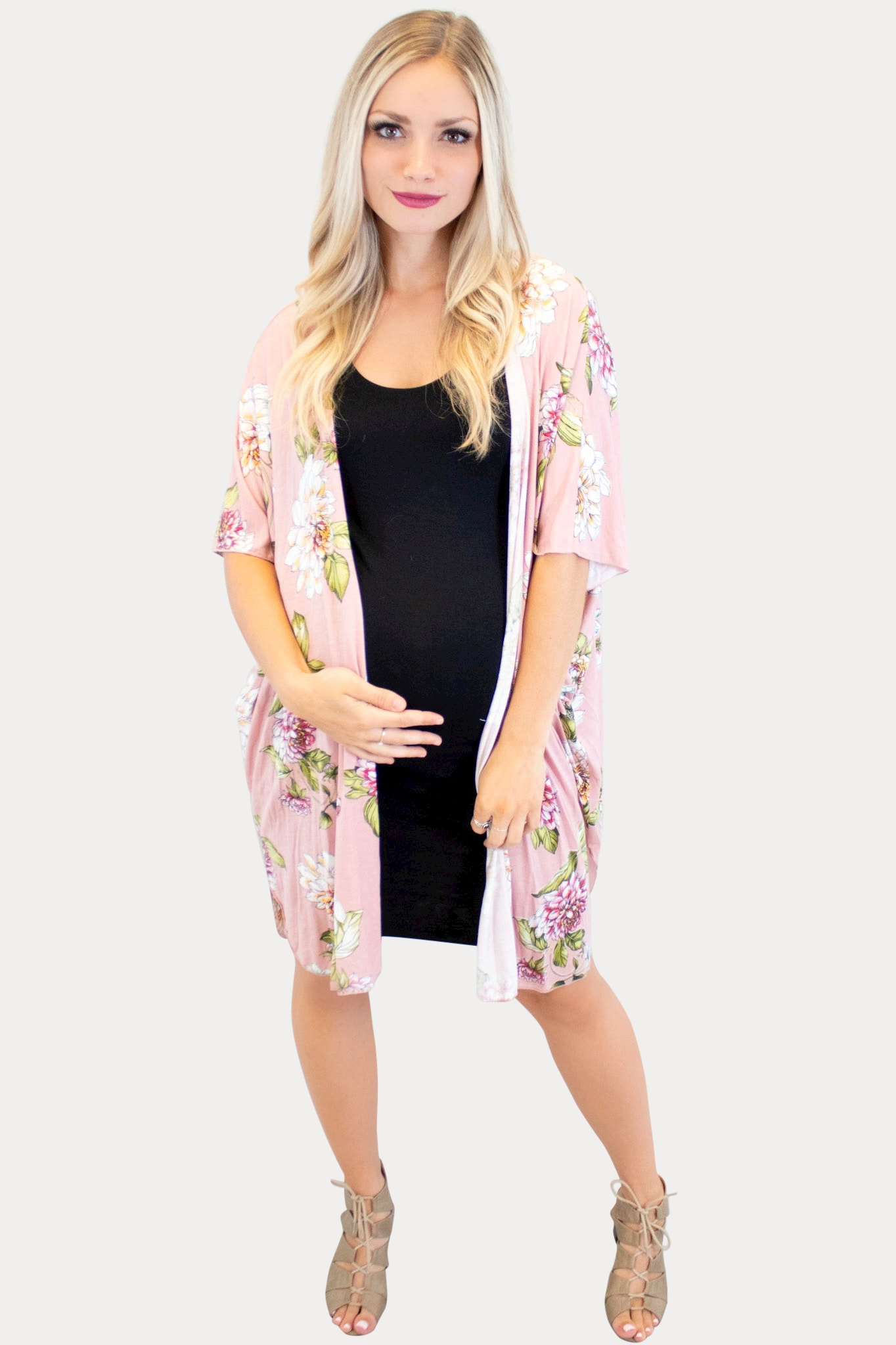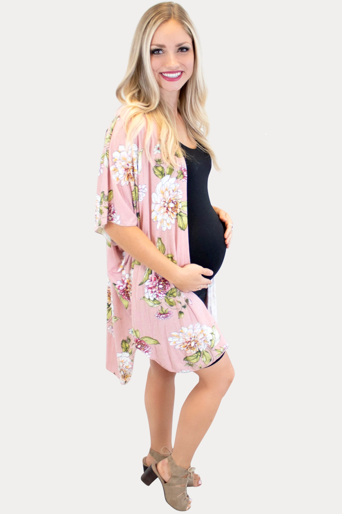 The perfect floral maternity kimono has arrived to make every outfit pop! Features a super soft and lightweight material. Perfect for layering! Pairs perfectly with denim and dresses. A great way to complete your baby shower look! A total win to wear throughout pregnancy and beyond.