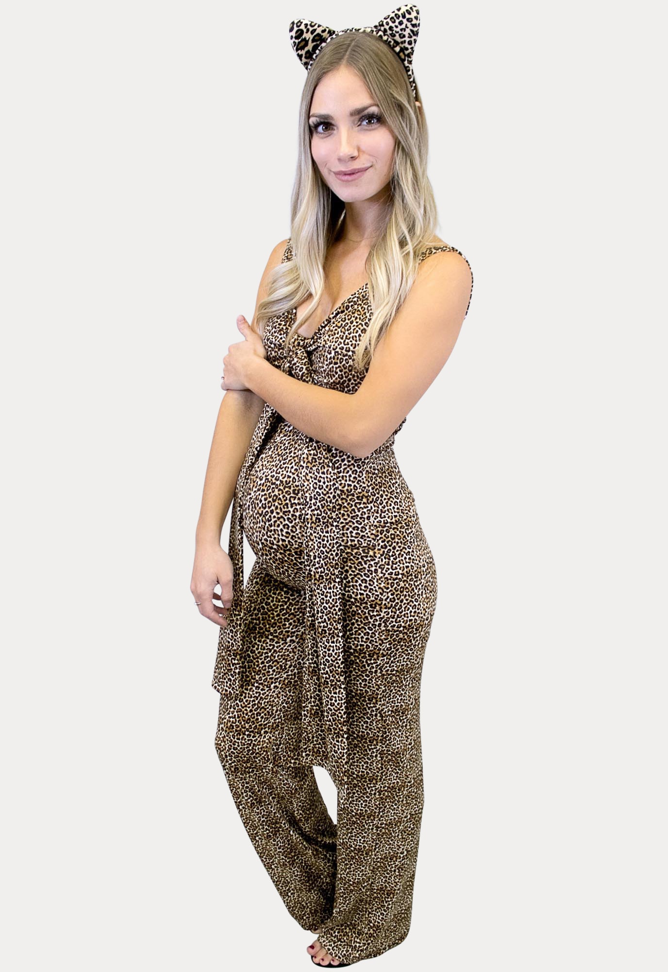 Our leopard maternity costume is here to show off your bump in true Halloween style! This costume is the perfect mix of comfort and style. Your maternity leopard costume includes our leopard cutout bumper and complimenting cat ears! You will love your leopard maternity set and so will everyone who sees it. Best part about purchasing your maternity Halloween costume from Sexy Mama Maternity? The clothing pieces of your costume are designed to wear throughout pregnancy and beyond! No more throwing money away on a Halloween costume when you purchase from us!