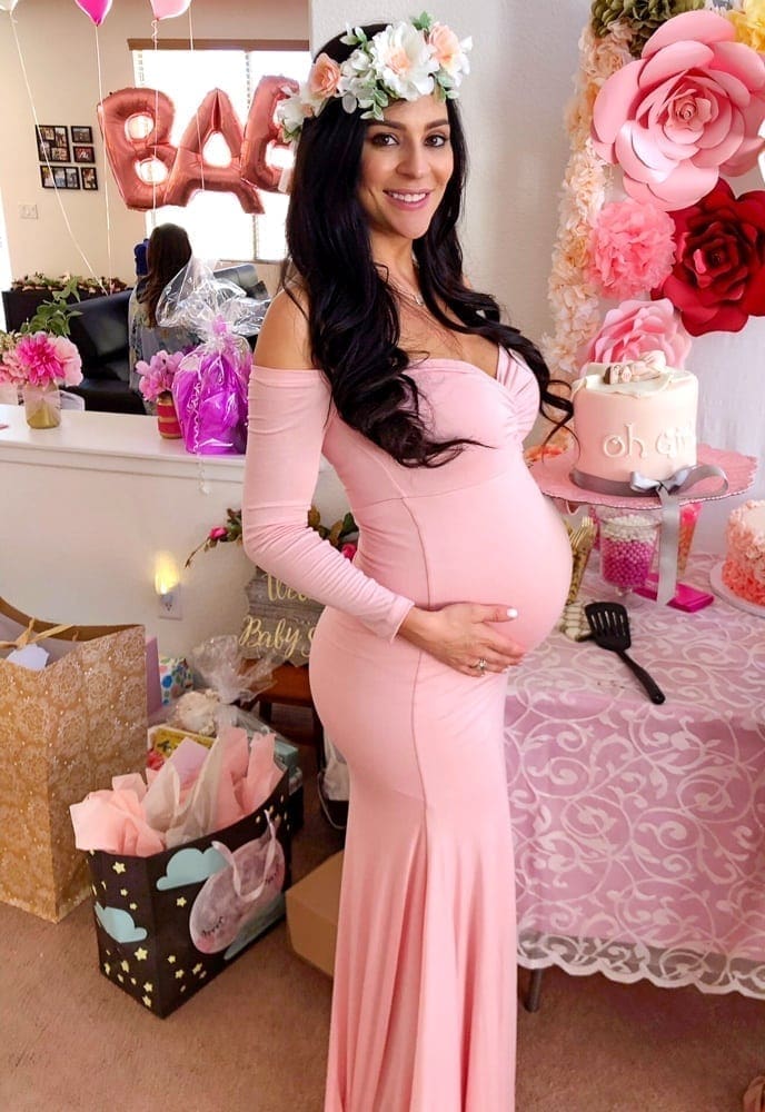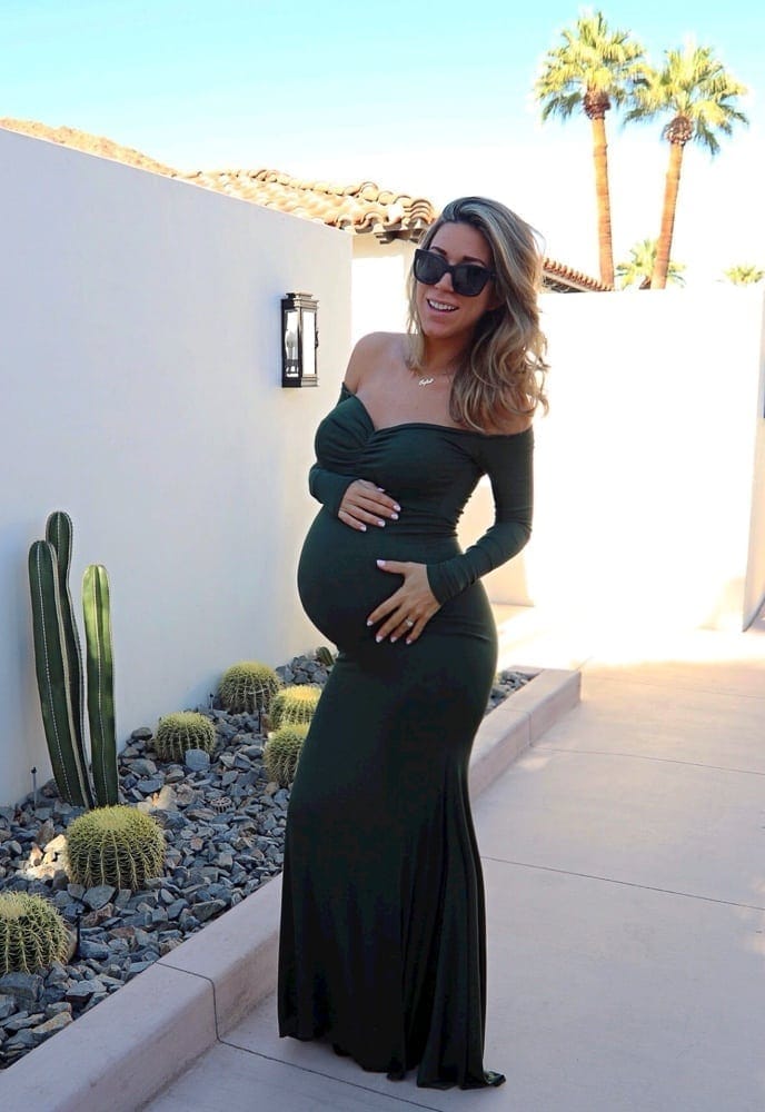 Our Long Sleeve Baby Shower Gown is perfect for your maternity photoshoot or special event! With a flared bottom that hits the ground, a slim fit bodice, and a flattering premium stretch material, this gown is equal parts comfort and elegance. Because it has a closed front and drapes the floor, it is the perfect maternity gown for your baby shower or any formal occasion. (Pictured in Cream, Blush Pink, and Olive.)