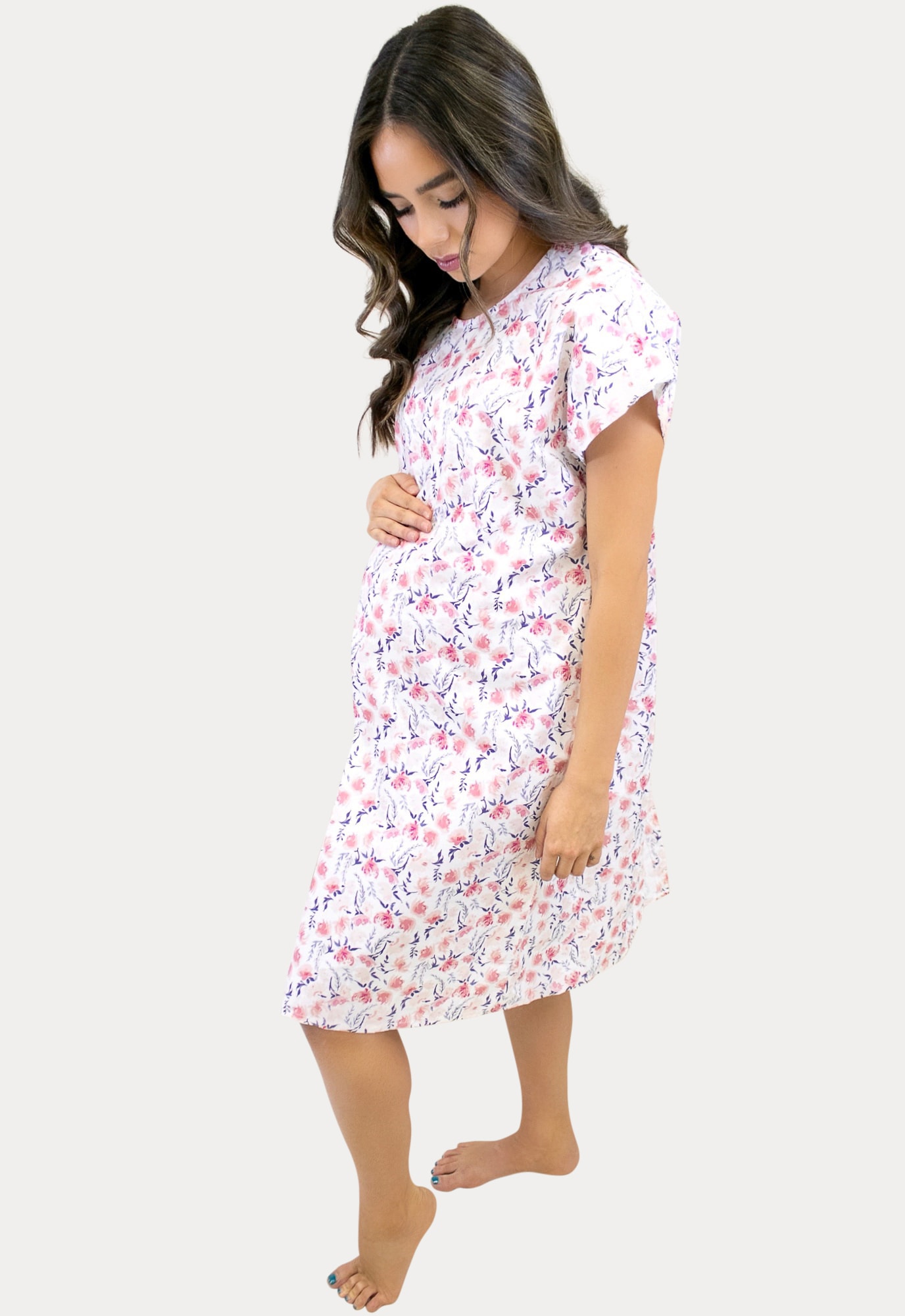 Who says you shouldn’t be stylish while giving birth? You’re still the star of the show, at least till your little one arrives! Instead of the typical used drab hospital gown provided to expectant mothers upon admission to the labor & delivery unit, push in style with your very own floral maternity hospital gown. An item every hospital bag must-have! Meets hospital standards, breastfeeding friendly and features a velcro shoulder and back! It will be all you need for a super cute special delivery whether you labor or deliver via C-section. Not to mention it’s perfect for birth photography!