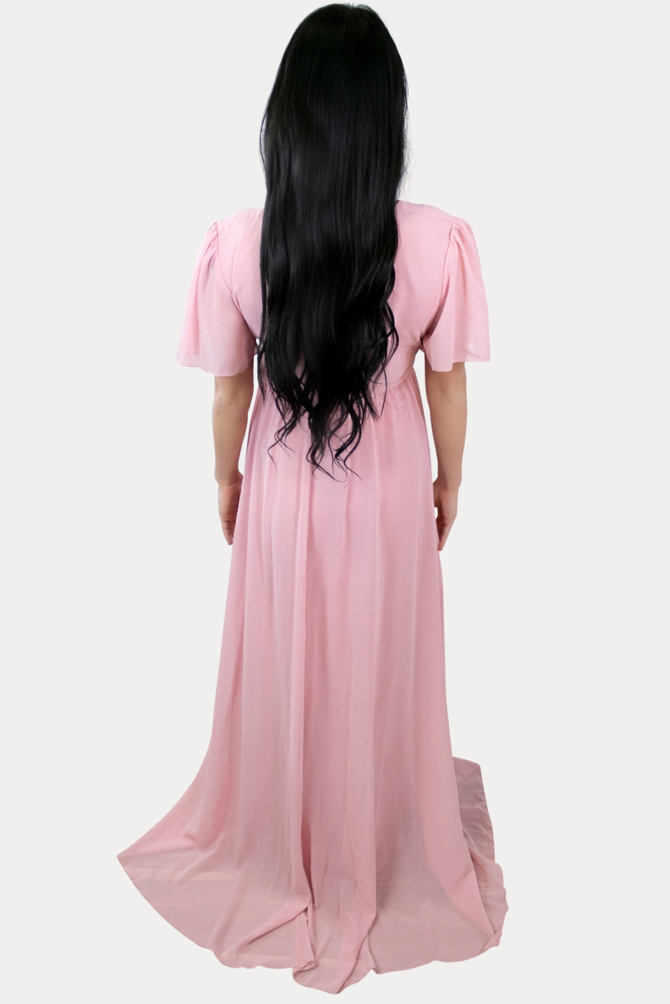 Our mauve maxi maternity dress with sweetheart neckline is stunning and beautiful! With short flowing sleeves, and tie front waist, this dress is sure to flatter every mama-to-be. Made of a delicate chiffon fabric with a sexy front slit, you’re sure to feel absolutely stunning! Great for a special occasion, date night, or photoshoot! This elegant sweetheart pregnancy maxi is perfect throughout all nine months of pregnancy and beyond.