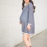 Maternity Sweatshirt Dress? Yes, please. Short, flowy, v-neck, long-sleeve dress. Navy blue with cream reverse stitching, unique open back with side pockets. Nothing could be better.